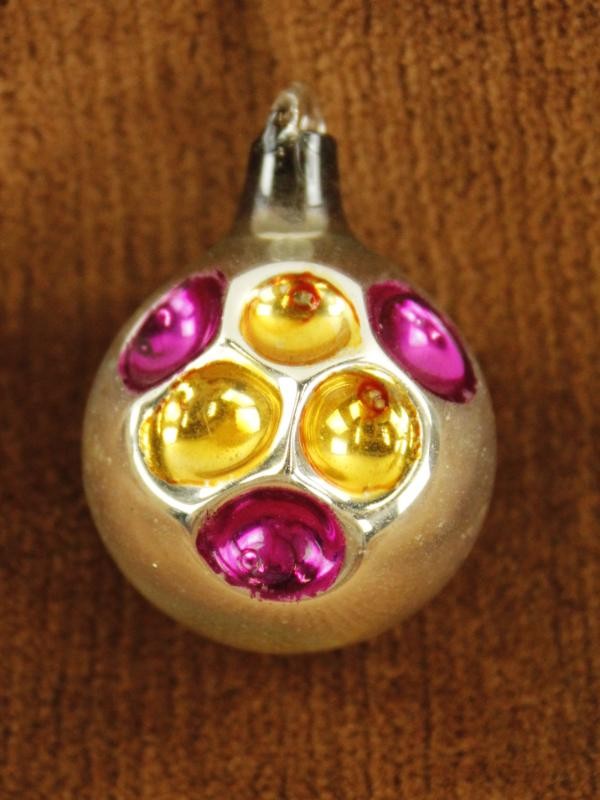 De glazen ballen hebben een zilverkleurige basis met prachtige ingedrukte reflectoren in warme tinten rood, roze en goud.