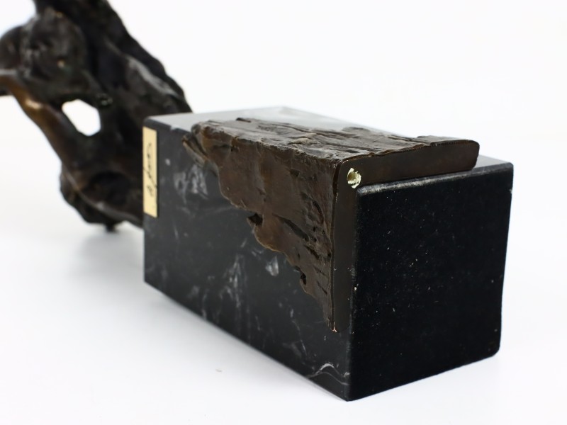 Beeld in goede staat, enkele kleine chipjes in de coating, normaal voor gecoate bronzen beelden; geen grote beschadigingen.
