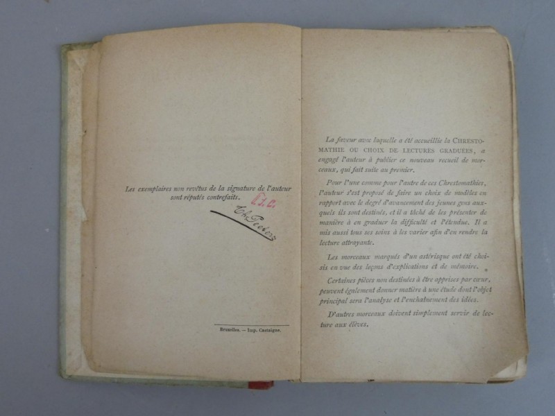 - Betreft een bloemlezing van Franse teksten ("Chrestomathie") voor middelbare scholen, samengesteld door P.J. Castaigne.
