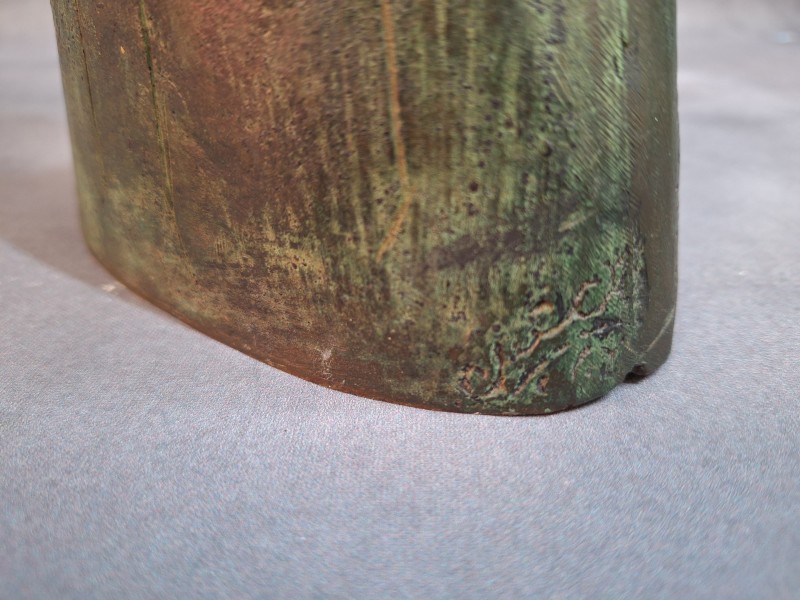- Materiaal & patina: Massief brons met een rijke, geoxideerde groenbruine patina die de ouderdom verraadt.