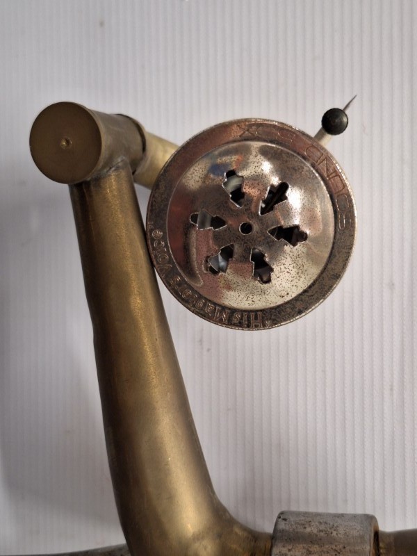 Prachtige antieke grammofoon van His Master’s Voice (HMV), een iconisch merk uit de vroege geschiedenis van geluidsopname. Deze originele grammofoon is voorzien van een elegante koperen hoorn en een houten kast met het beroemde HMV-logo “His Master’s Voice”.