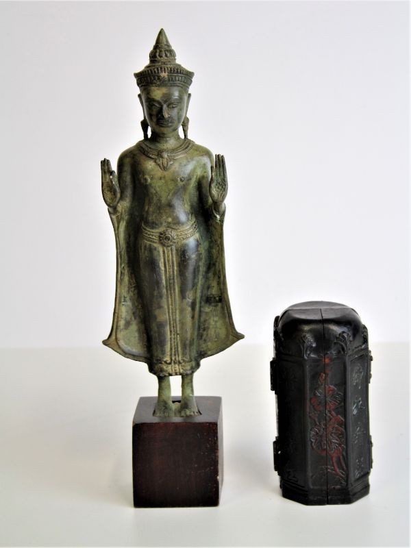 Het reisaltaar bestaat uit 3 delen, de 2 zijpanelen komen naar voor en dan is het een cilinder.
