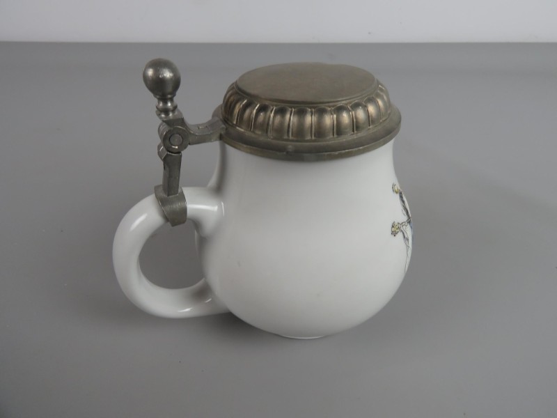 Keramische bierpul met een Beierse leeuwenwapen.