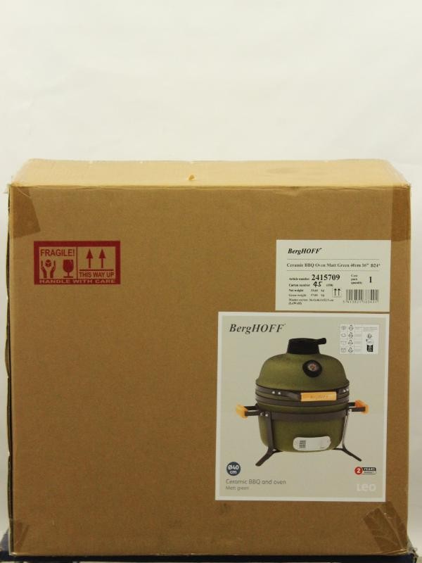 Deze keramische barbecue en oven van BergHOFF uit de LEO-lijn is uitgevoerd in matgroen en heeft een diameter van 40 cm (16 inch). Het betreft een compacte keramische barbecue geschikt voor gebruik in de tuin of op het terras, ontworpen voor zowel grillen als ovenbereidingen.