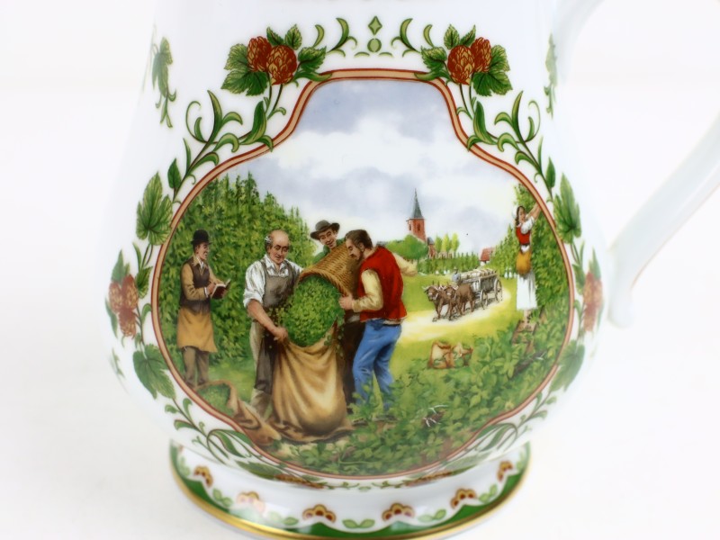 Set van 2 porseleinen kruiken (+/-1986). Duitse stijl. Deze set bestaat uit twee porseleinen kruiken, een kleine en een grote.