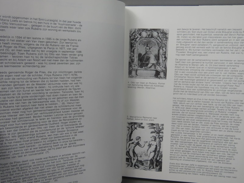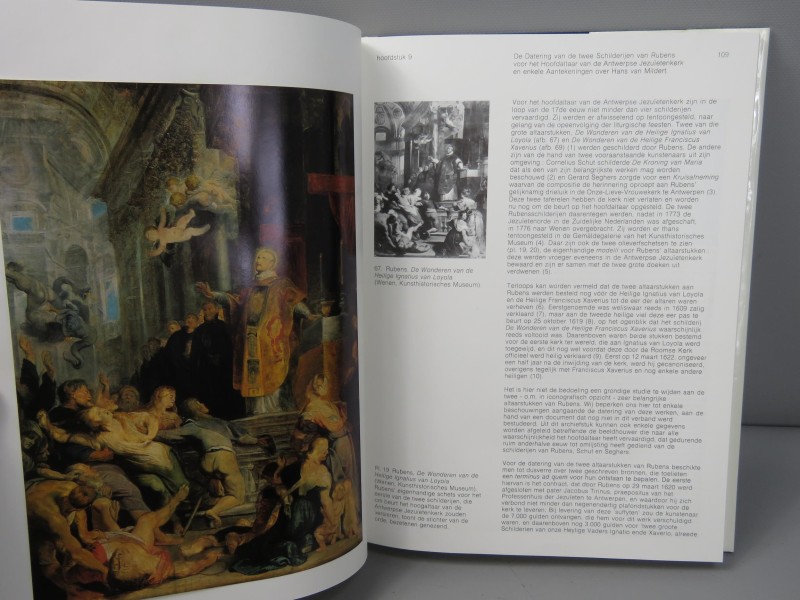 Boek getiteld "Rubens en zijn eeuw" geschreven door F. Baudouin in een insteek kartonnen hoes.