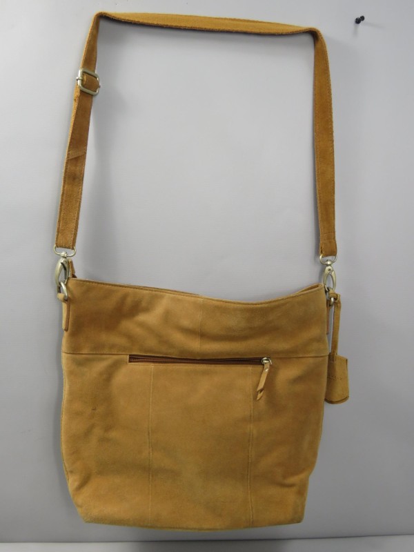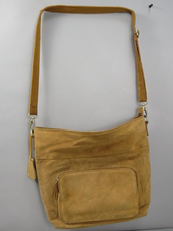 Cognackleurige tas van het merk Burkely is gemaakt van echte suède en heeft een afneembare, verstelbare schouderband. Naast het ruime voorvak en achtervak met rits, vind je aan de binnenkant nóg drie vakken: een telefoon-, rits- en steekvak.