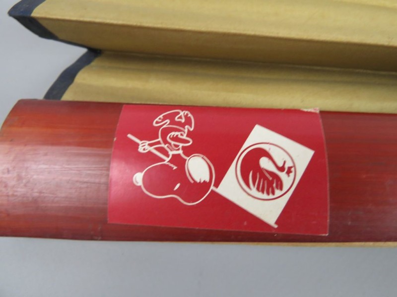 Commercieel/Promotioneel Gebruik: Opvallend is dat de zijkanten verschillende stickers bevatten, wat suggereert dat het als promotiemiddel werd gebruikt: