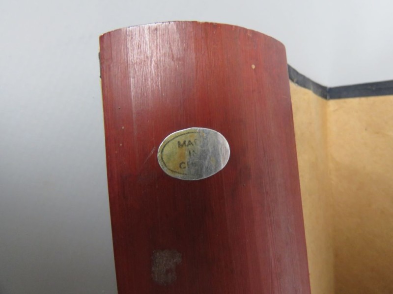Frame: De stokken (of zijkanten) zijn gemaakt van hout of bamboe en zijn diep rood of roodbruin gekleurd.