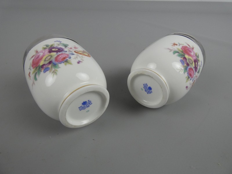 Kenmerken: Elk stuk heeft een glanzend metalen deksel met een handige ringgreep. Ze dienden waarschijnlijk als luxe eierwarmers of eierbekers met deksel.