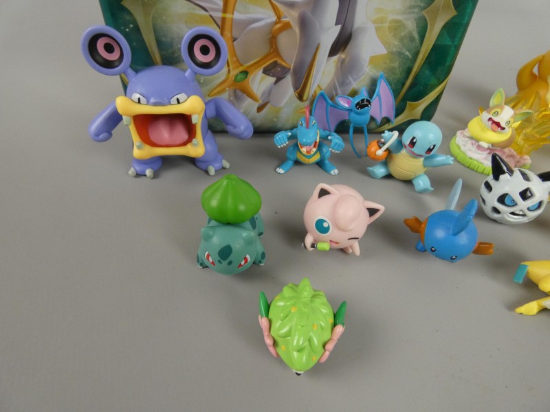 Deze verzameling bevat meer dan 20 diverse Pokémon figuren, waaronder populaire starters zoals Bulbasaur en Squirtle, iconen als Pikachu en Psyduck, plus krachtige figuren zoals Exploud, Flareon, en de legendarische vogels Moltres en Zapdos.