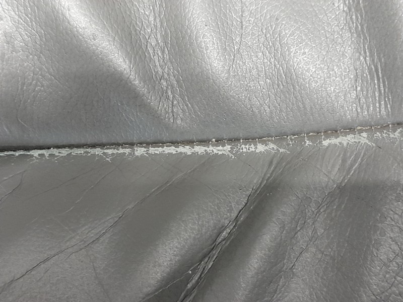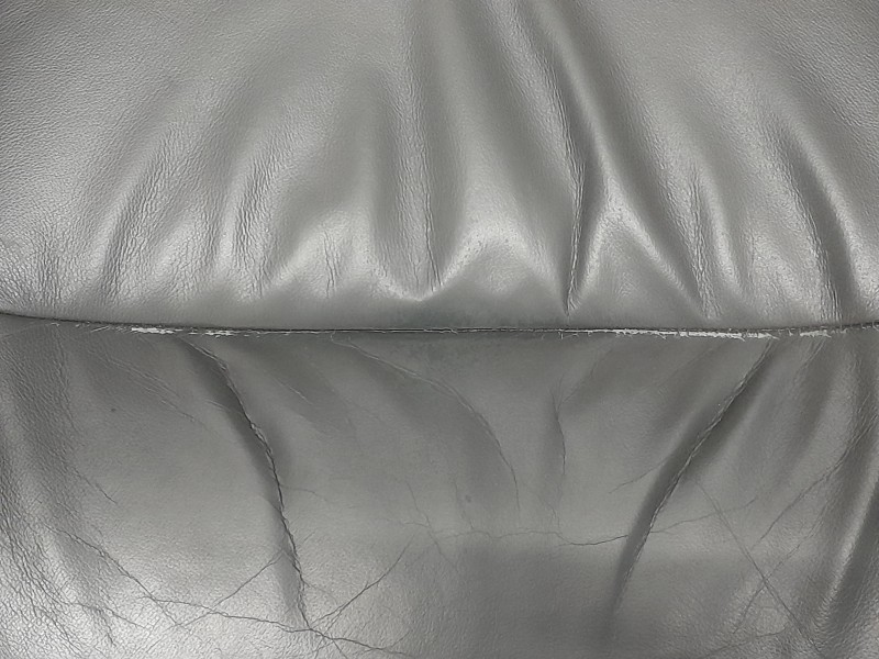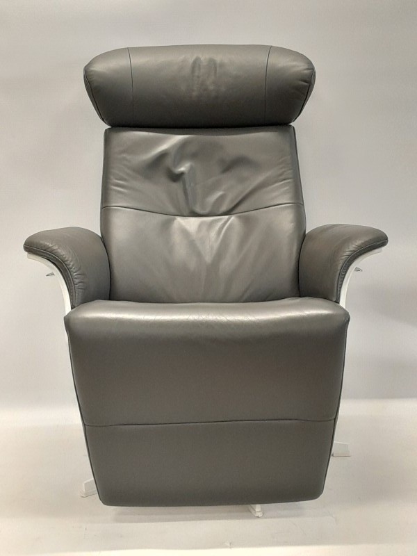 "Conform" relaxfauteuil – Grijs leder met witte basis en metalen voet