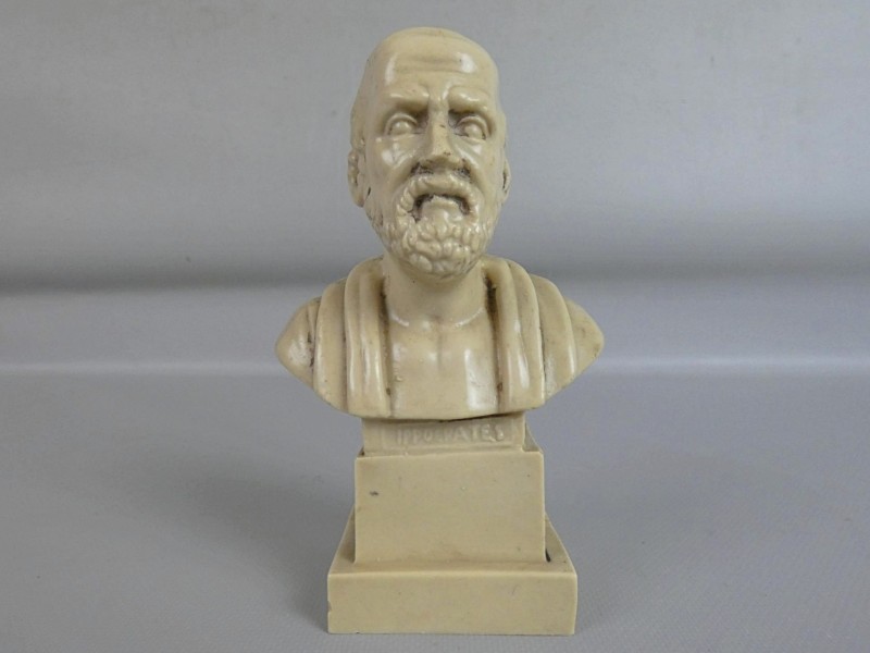 Naam "IPPOCRATES" (Italiaanse spelling) gegraveerd op de plint.