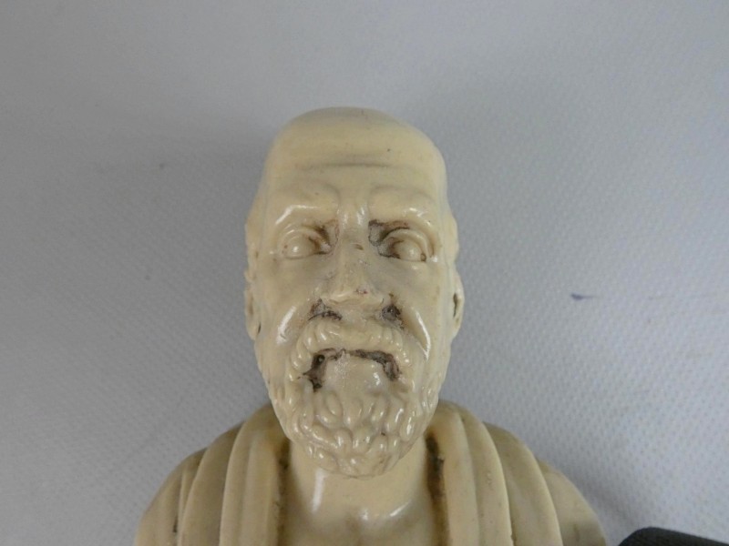 Voorstelling van een bebaarde man in een gedrapeerde toga.