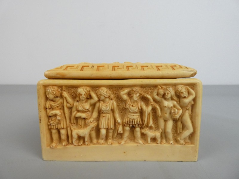- Deksel voorzien van figuren binnen een Griekse meander-rand.