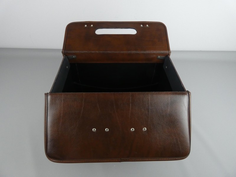 Kenmerken: Solide handvat, metalen sluitingen en een ruim, donker interieur. Perfect als aktetas, documentenhouder, of voor een unieke retro-look.