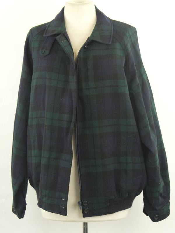 Dit elegante en sportieve wollen bomberjasje van Burberry’s is uitgevoerd in een klassiek blauw-groen ruitpatroon, dat doet denken aan traditionele Schotse tartanmotieven. Het ontwerp combineert een tijdloze uitstraling met een praktische, casual pasvorm. De jas heeft een platte kraag, een verborgen ritssluiting met knoop bovenaan, en elastische boorden aan de onderkant voor een subtiel bomber-effect.