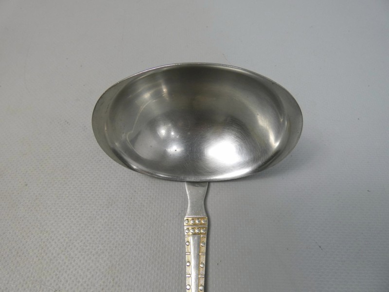 De zilverkleurige steel is aan de zijkanten voorzien van een gegraveerd, goudkleurig motief.