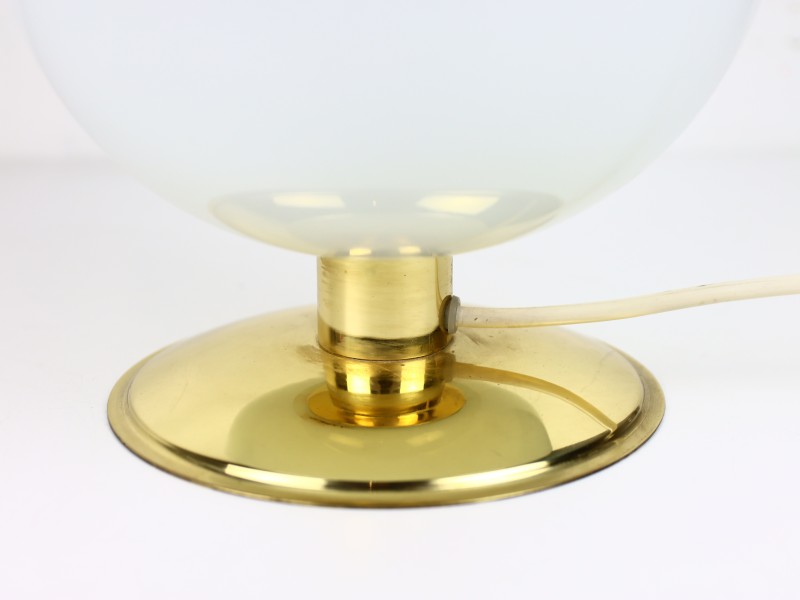 Optisch: De lamp heeft wat ouderdoms- en gebruikssporen, hier en daar een lijn op de buitenkant van het glas. Het messing is heel zuiver en netjes.