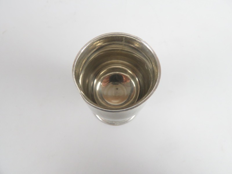 Tinnen beker. Gesigneerd Elfi.