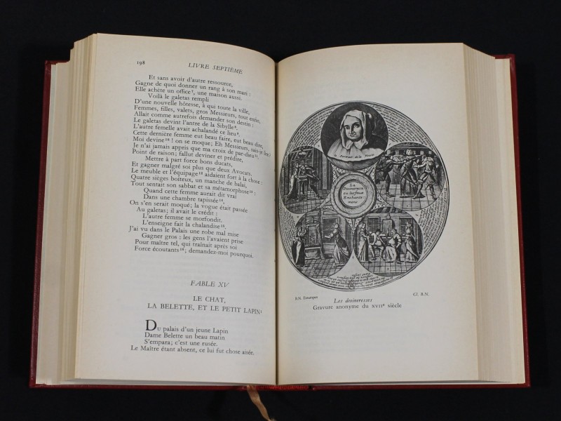 Binnenin wacht een even verzorgde leeservaring. De tekst is gebaseerd op de wetenschappelijk gezaghebbende Garnier-editie, ingeleid en van noten voorzien door Georges Couton, eminent La Fontaine-kenner en professor aan de Faculteit Letteren van de Universiteit van Lyon. Tweeëndertig prachtige kunstreprodukties — waaronder werken uit het Louvre — verlenen het boek een extra visuele dimensie.