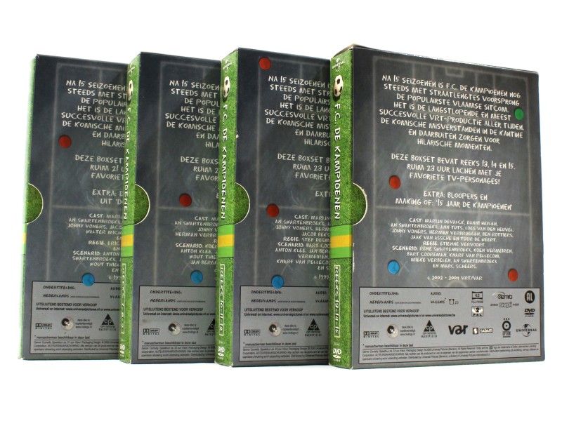 Deze DVD-Set van F.C. De Kampioenen bevat seizoen 4 tot en met 15 van de populaire Vlaamse komedieserie.