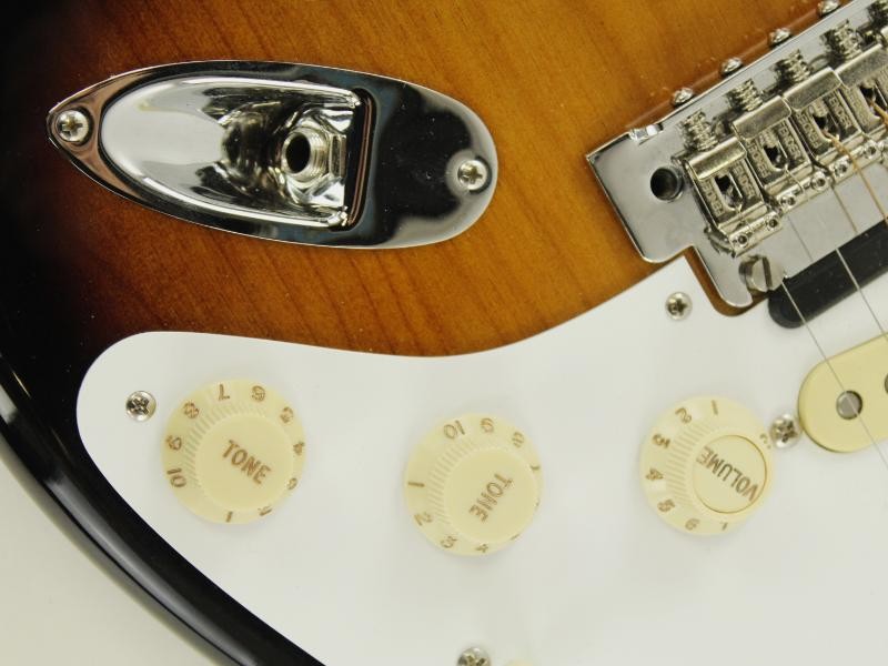 De body heeft een 2-Color Sunburst-afwerking met witte slagplaat en crèmekleurige knoppen, die samen het authentieke vintage uiterlijk versterken. De hals is vervaardigd uit esdoorn met een gelakt maple toets en beschikt over een moderne “C”-halsprofiel en een 9.5”-radius voor verbeterd speelcomfort.