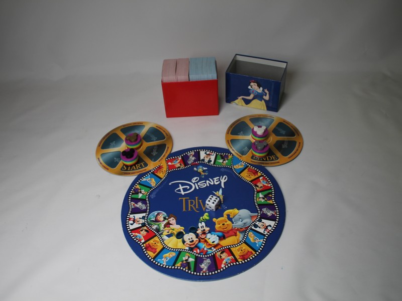 Het gezelschapsspel: Disney Trivia. Een quiz- en bordspel dat wordt geleverd in een herkenbaar rond verzamelblik in de vorm van een filmrol. Het doel van het spel: spelers moeten vragen beantwoorden over Disney-films om als eerste 5 Mickey Mouse-munten van verschillende kleuren te verzamelen. Geschikt voor 2 tot 4 spelers.