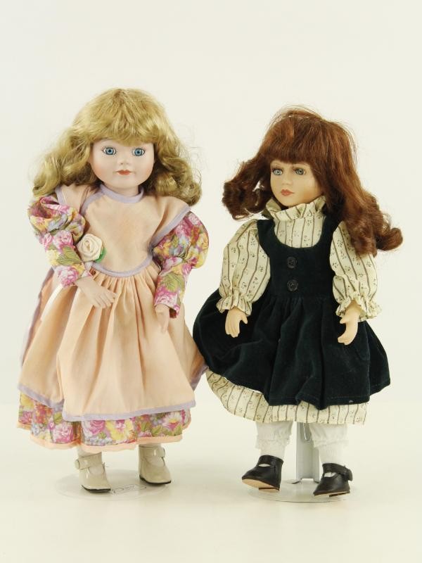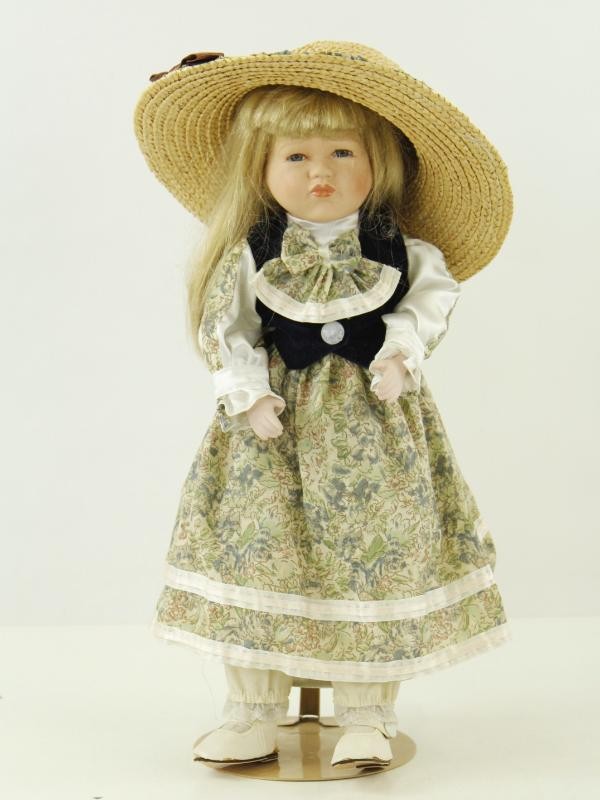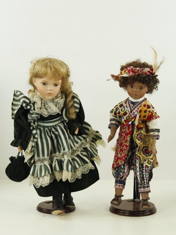 Elke pop heeft een fijn beschilderd porseleinen gezicht met karaktervolle gelaatsuitdrukkingen, realistische glazen ogen en zorgvuldig gestileerde haren.
