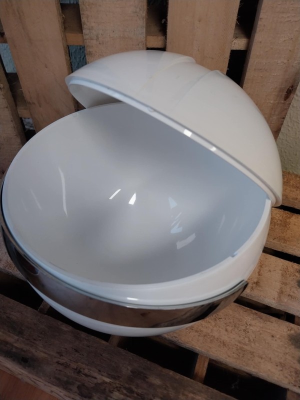 De Guzzini Stella ijsemmer is een iconisch ontwerp uit 1970 van Pablo Tilche, dat nog steeds in productie is. Uitgevoerd in witte kunststof met een zilverkleurig kunststof handvat, deze uitvoering hoort bij de eerste productie in de jaren 70.