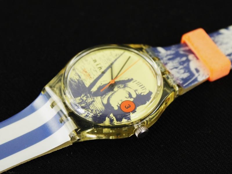 Het horloge (model GK132) is van het Zwitserse bedrijf Swatch en in Zwitserland geproduceerd.