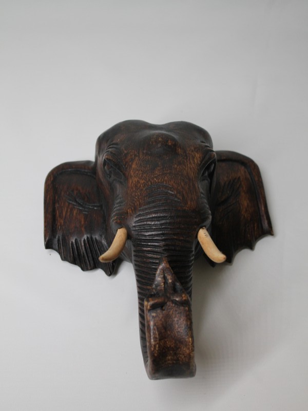 Deze handgesneden houten olifantenkop is bedoeld als decoratief muurstuk. In vele culturen symboliseren olifanten kracht, wijsheid, voorspoed en bescherming.