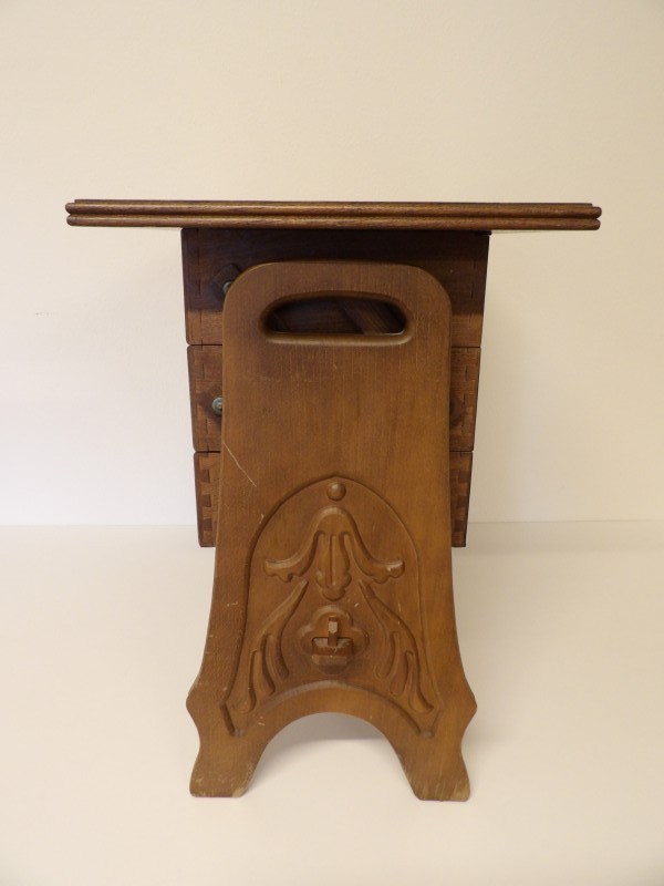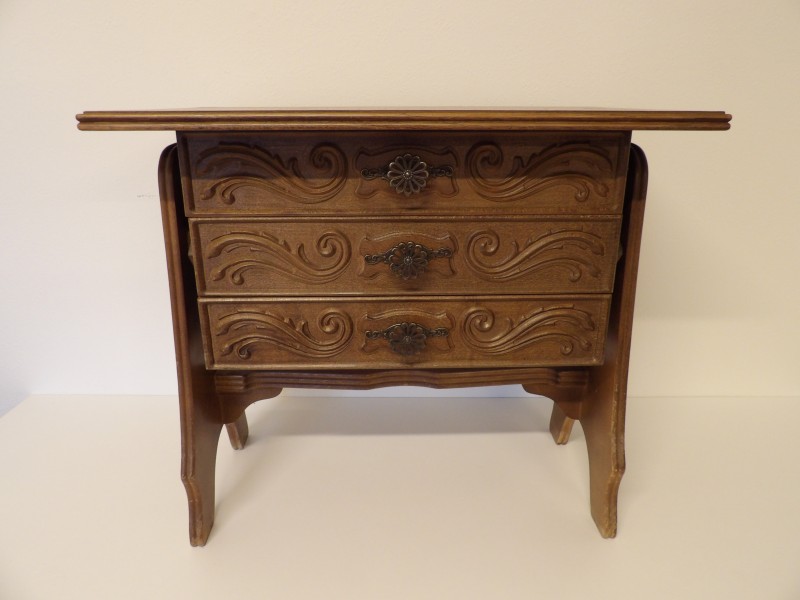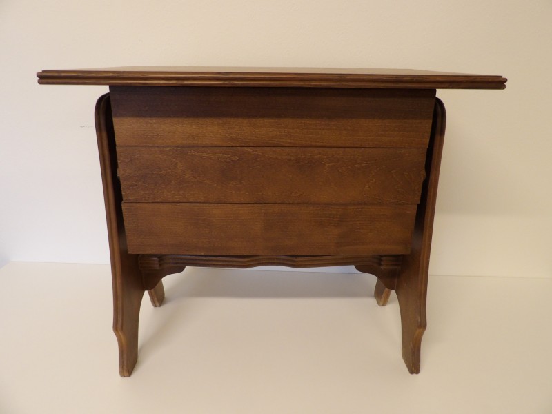 Houten naaikastje bestaande uit 3 uitklapbare lades.