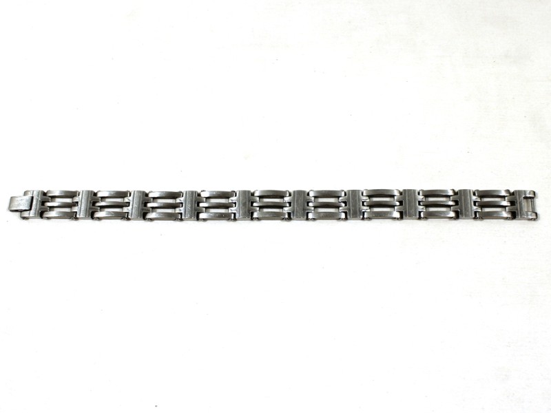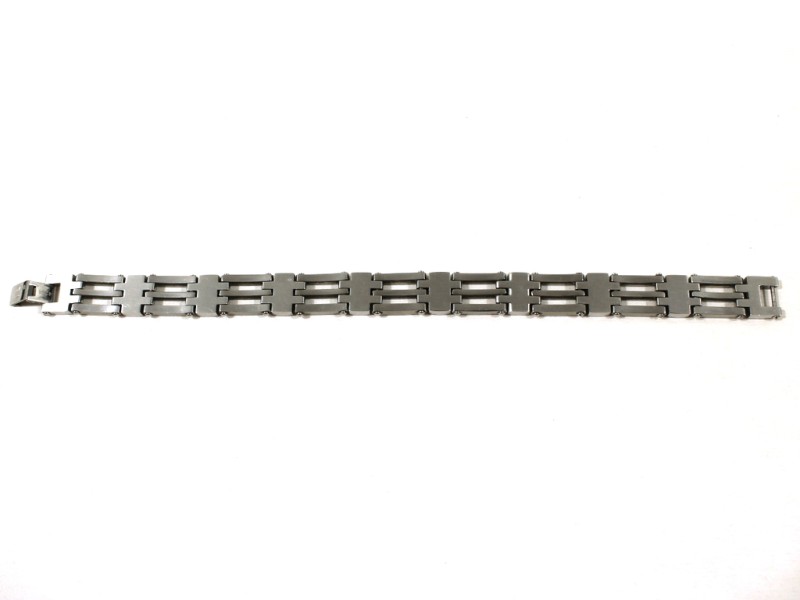 Deze armband van roestvrij staal straalt kracht en elegantie uit.
