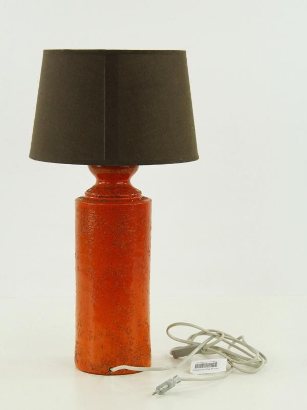 Sfeervolle Italiaanse tafellamp met een robuuste keramische voet in een warme oranje tint.