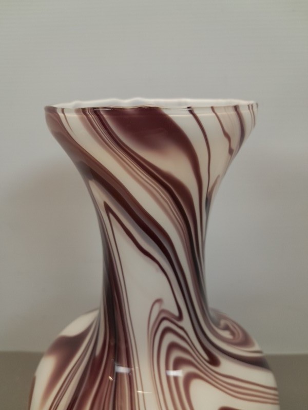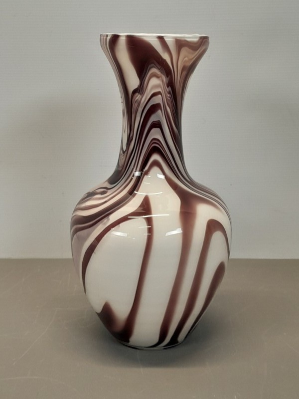 - Materiaal: Deze vaas is vervaardigd uit hoogwaardig opaline glas, bekend om zijn melkachtige, lichtdoorlatende kwaliteit. Het marmerpatroon is ingebakken in het glas, wat zorgt voor een unieke en natuurlijke uitstraling.