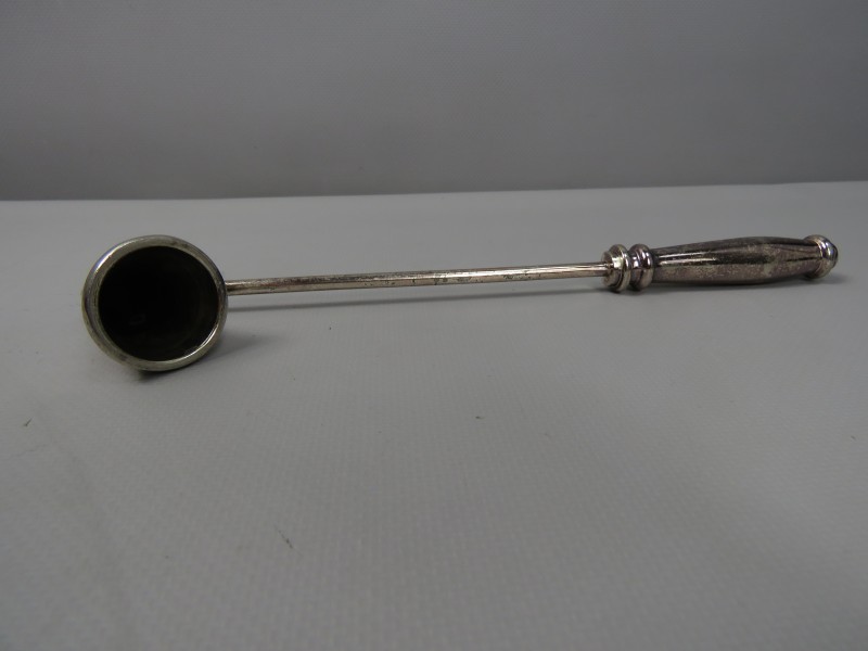 Mooie vintage verzilverde kaarsendover met een beweegbare kop. Niet alleen een handig gebruiksvoorwerp maar ook een heel leuke glimmende eye catcher op tafel.