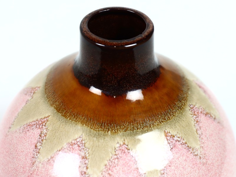 Keramische en geglazuurde balvaas met een mooie kleurverloop en een eigentijdse stijl creëren een warme sfeer in je interieur, lijkt op een grote opvallende kerstbal.
