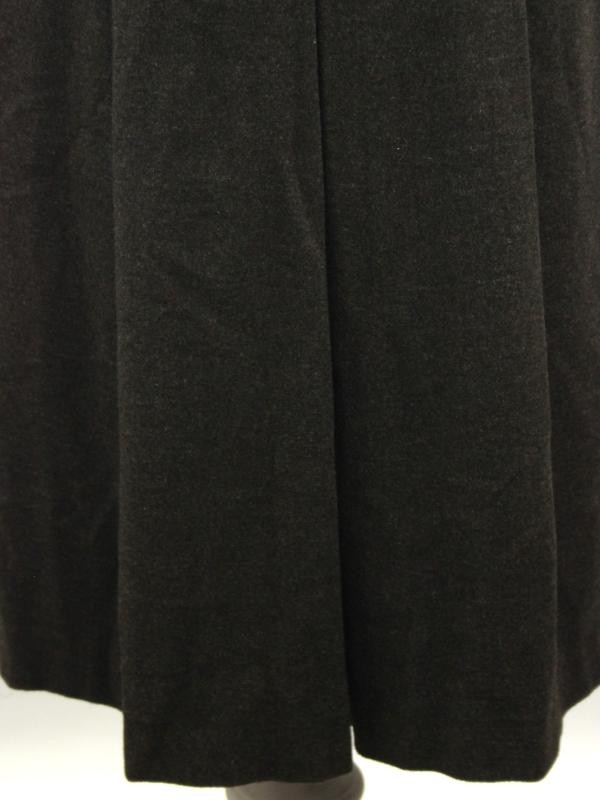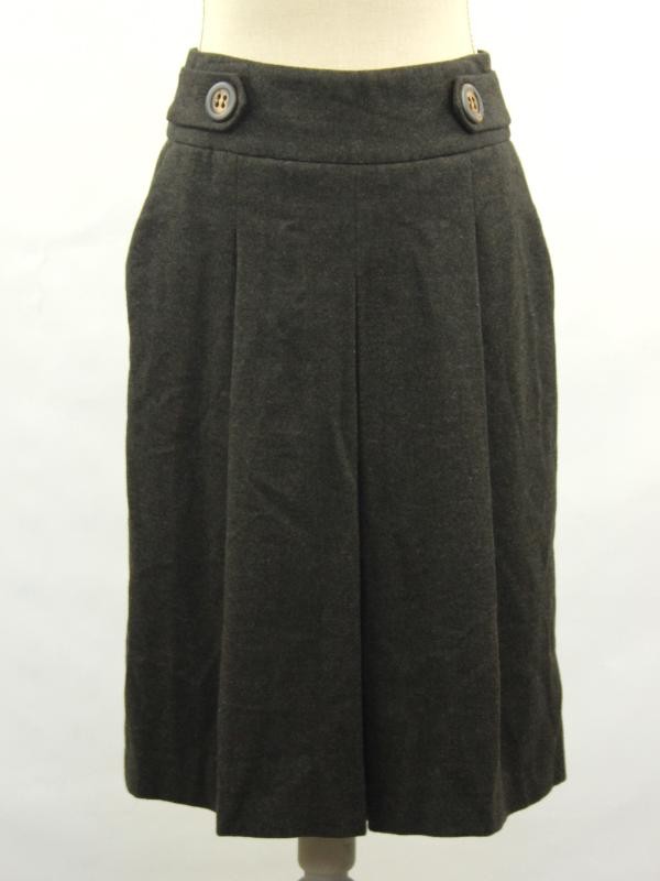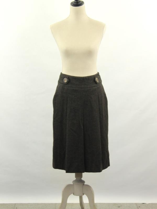 Klassieke donkerbruine rok van Natan Collection. De rok is vervaardigd uit kasjmier en is vooraan afgewerkt met twee grote knopen. De rok valt net over de knie en heeft een elegante A-lijn.