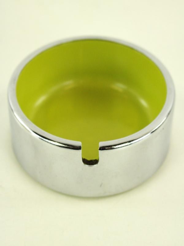 Set van vier kleurrijke, stapelbare asbakken, ontworpen in de jaren 60 door Isamu Kenmochi (1912-1971). De asbakken hebben een gele, groene, blauwe en oranje binnenkant uit kunststof. De rand bestaat telkens uit een verchroomde laag. Aan de achterkant zijn de asbakken gemerkt en staat het opschrift 'Pat. pend. 4018039'.