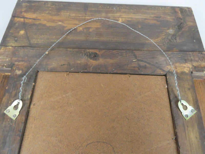 Spiegel met een houten kleurvolle rand. Zwart geel rood van de Belgische vlag.