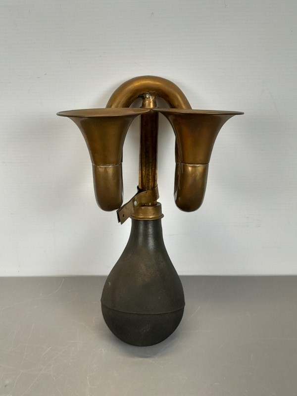 - Met zijn twee hoorns en robuuste messing constructie is deze claxon een herkenbaar en nostalgisch object.