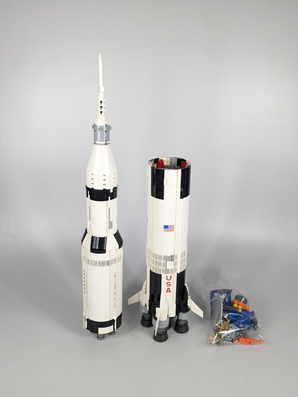 De raket kan in verschillende fasen uit elkaar worden gehaald, net als de echte Saturn V.