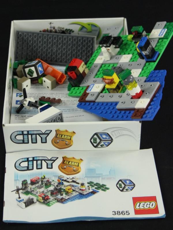 Deze set bevat onder meer het spelbord van LEGO-platen, diverse gebouwtjes, de speciale dobbelsteen, en de originele spelhandleiding.