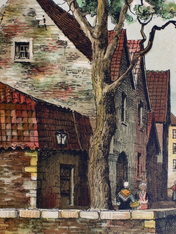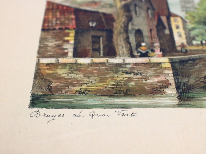 Titel "Bruges, Le Quai Vert" en handtekening zijn mee gedrukt (geen potlood). Onderaan rechts, tekst "Imprimé en France 1943". met logo BD.
