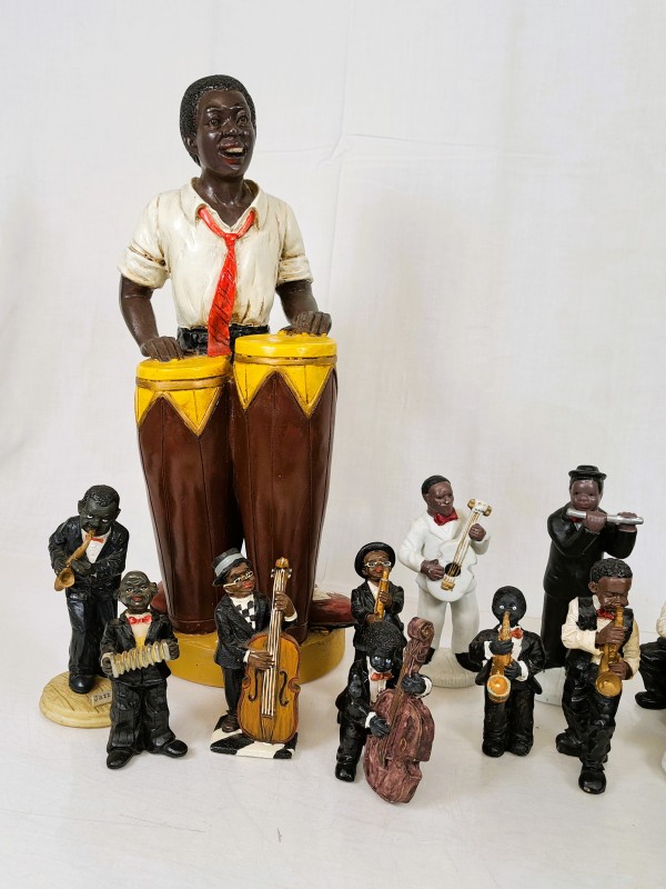 Lot van 17 jazz beeldjes met grote percussionist.