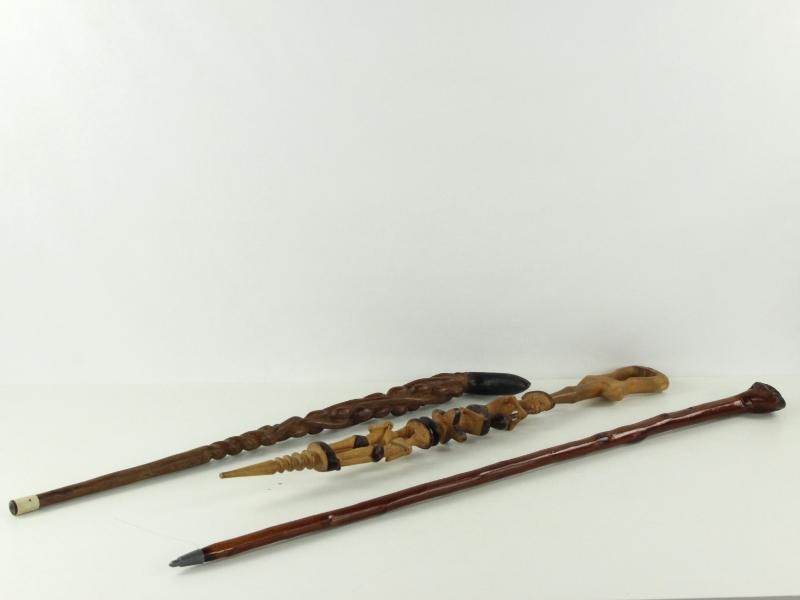 Lot van 3 handgesneden houten wandelstokken - decoratief en verzamelwaardig