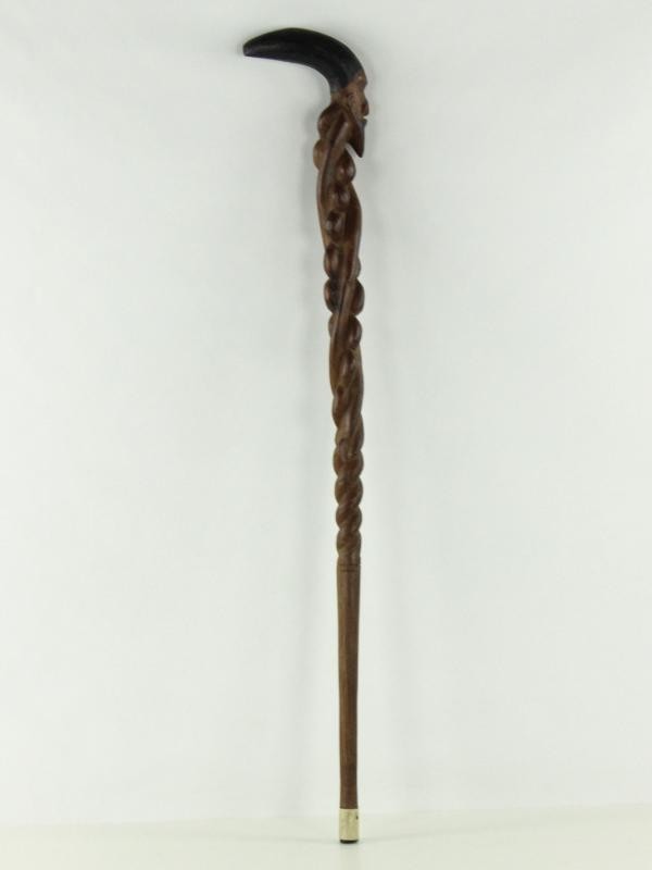 Wandelstok 2: Slank model met gedraaide schacht en een gesneden hoofd bovenaan.