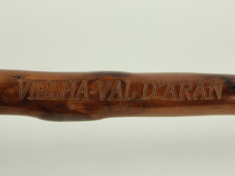 In het hout is de plaatsnaam “Vielha – Val d’Aran” gegraveerd, wat wijst op een souvenir- of reisherinnering uit deze Pyrenese regio. Bovenaan een stevige knoest.