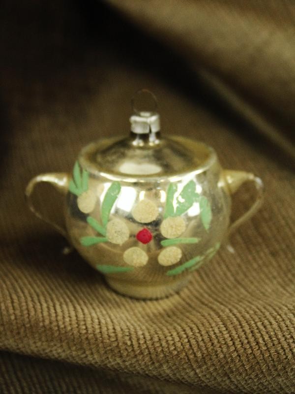 Dit lot bestaat uit 5 vintage kerstballen met een keukenthema, elk uitgevoerd in handbeschilderd glas. De set omvat diverse vormen die verwijzen naar kook- en keukenelementen, waaronder een hartvormige kerstbal als sfeervol accent. De ornamenten vertonen kenmerken van een mid-20e-eeuwse stijl, herkenbaar aan de metallic glans, de levendige kleuren en de traditionele afwerking die typerend is voor glasdecoratie uit deze periode.